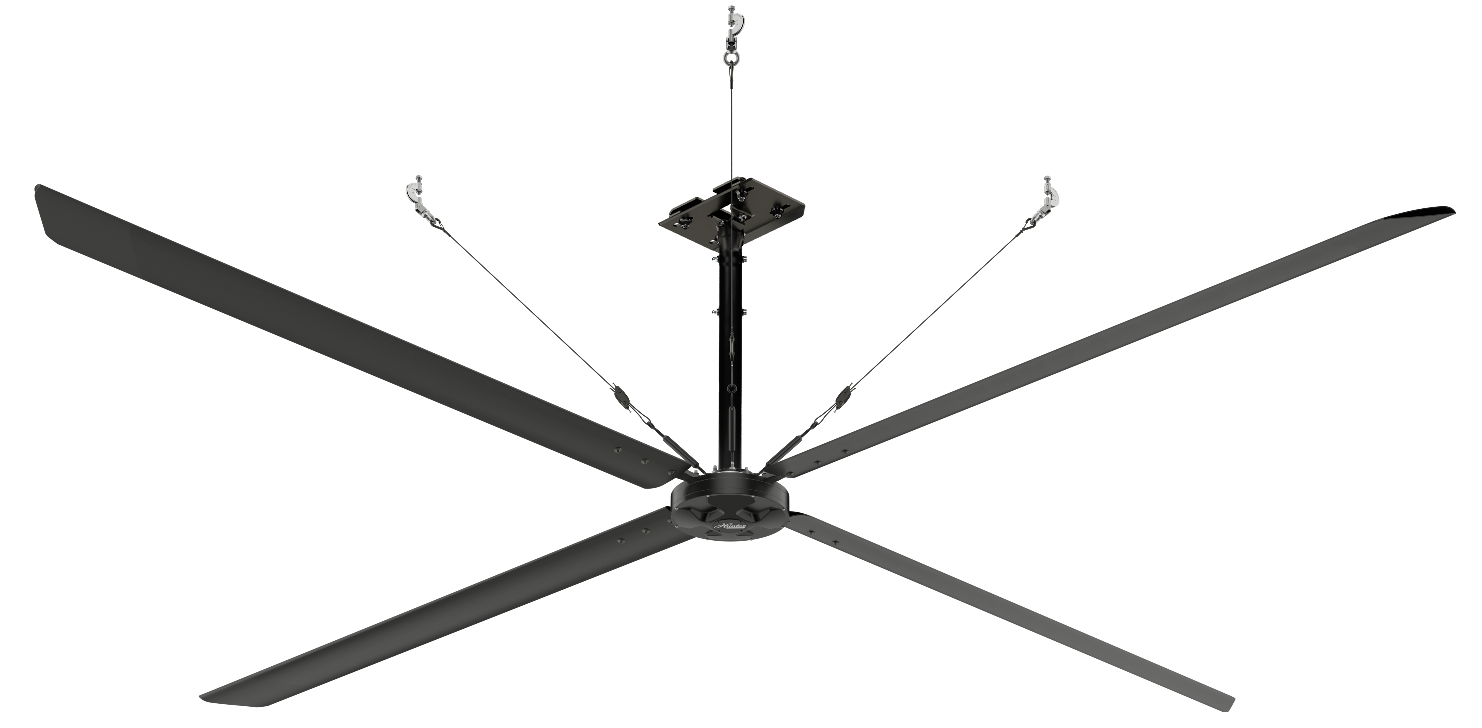Includes: Our patented adjustable downrod allows you to modify the installation height of your HVLS ceiling fan, letting you lengthen or shorten the ceiling-to-fan distance between 6.5' and 10'. It is prewired and includes U-Bolts, a VFD cable, and a safety retention cable.