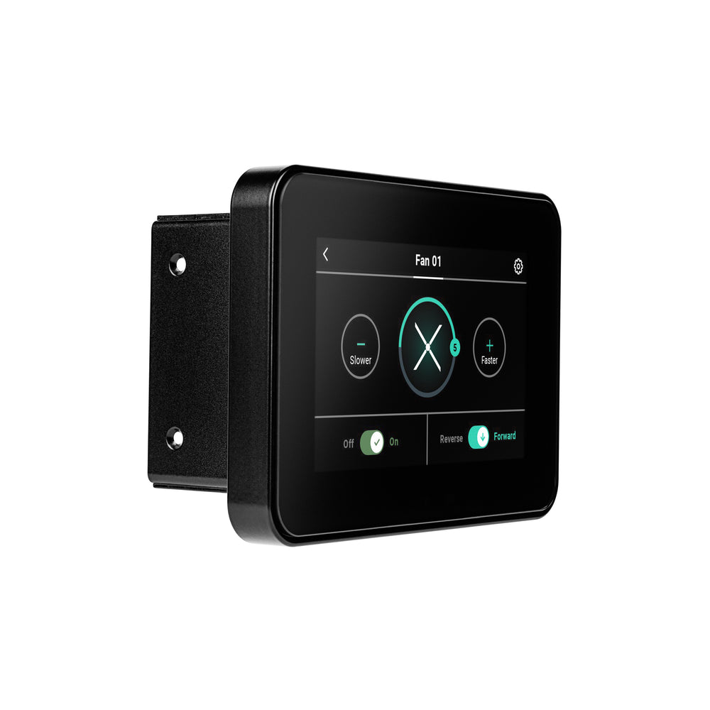 The 500 Series Fan Controller gives users the capabilities needed to get the most out of their fans. Offering advanced control for up to 30 fans over an Ethernet-based network that includes power for the controller. Easily manage each fan’s operations from the 5” PCAP touchscreen with a clean graphical visualization of speed and direction.